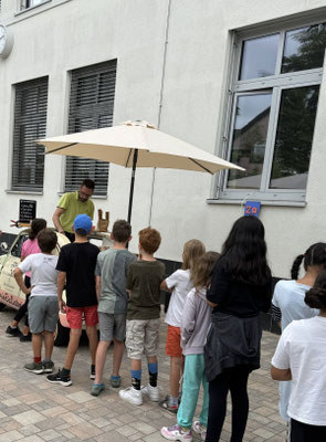 In der letzten Schulwoche vor den Sommerferien 2024 konnten wir den Schülerinnen und Schülern der Waldenser Schule eine ganz besondere Überraschung bereiten. Hupend fuhr ein Eiswagen auf den Schulhof und hatte für jeden eine leckere Kugel Eis dabei – ein perfekter Auftakt für die Ferien!